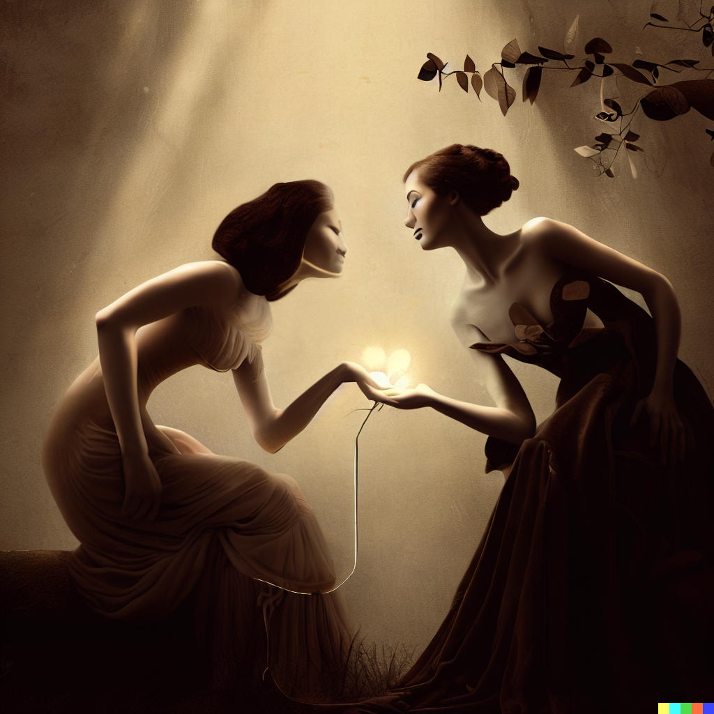 - a potential ai art prompt from this transcript -thematically related and should be slightly abstract and use a random lesser known art period from history with a color palette that fits the description and title
