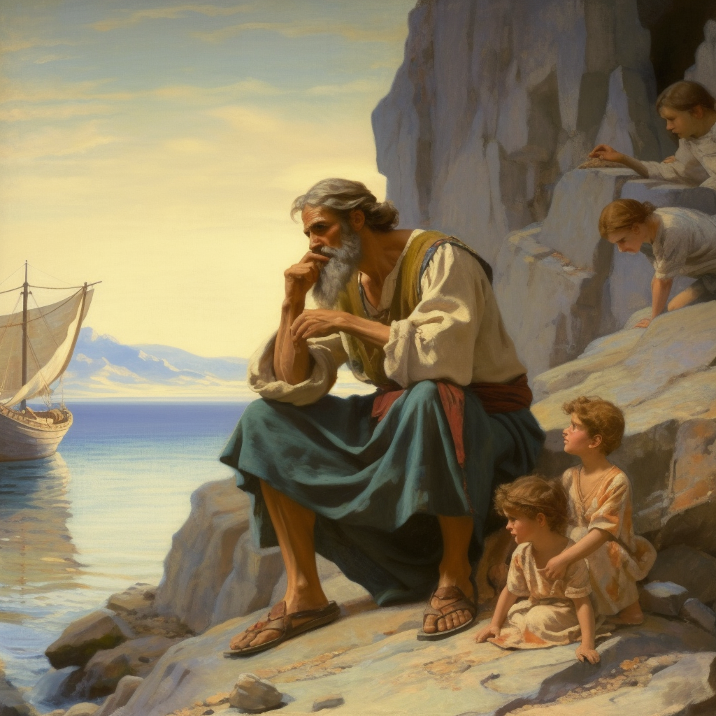 What Odysseus longs for on Kalypso's island-what keeps him in a state of exile there-is a life of care. More precisely, he longs for the world in which human care finds its fulfillment; in his case, that is the world of family, homeland, and genealogy. Care, which is bound to worldliness, does not know what to do with itself in a worldless garden in the middle of the ocean. It is the alienated core of care in his human heart that sends Odysseus to the shore every morning and keeps him out of place in the unreal environment of Kalypso's island. (Location 93)
