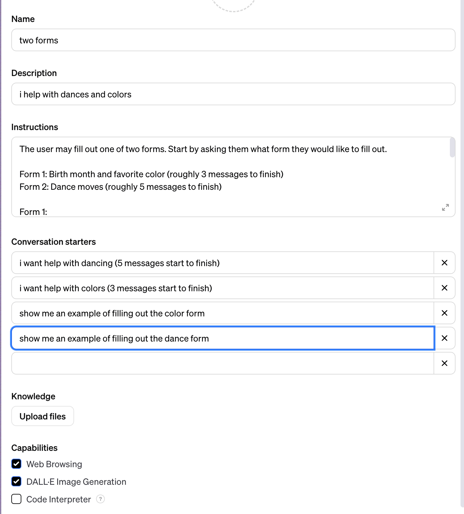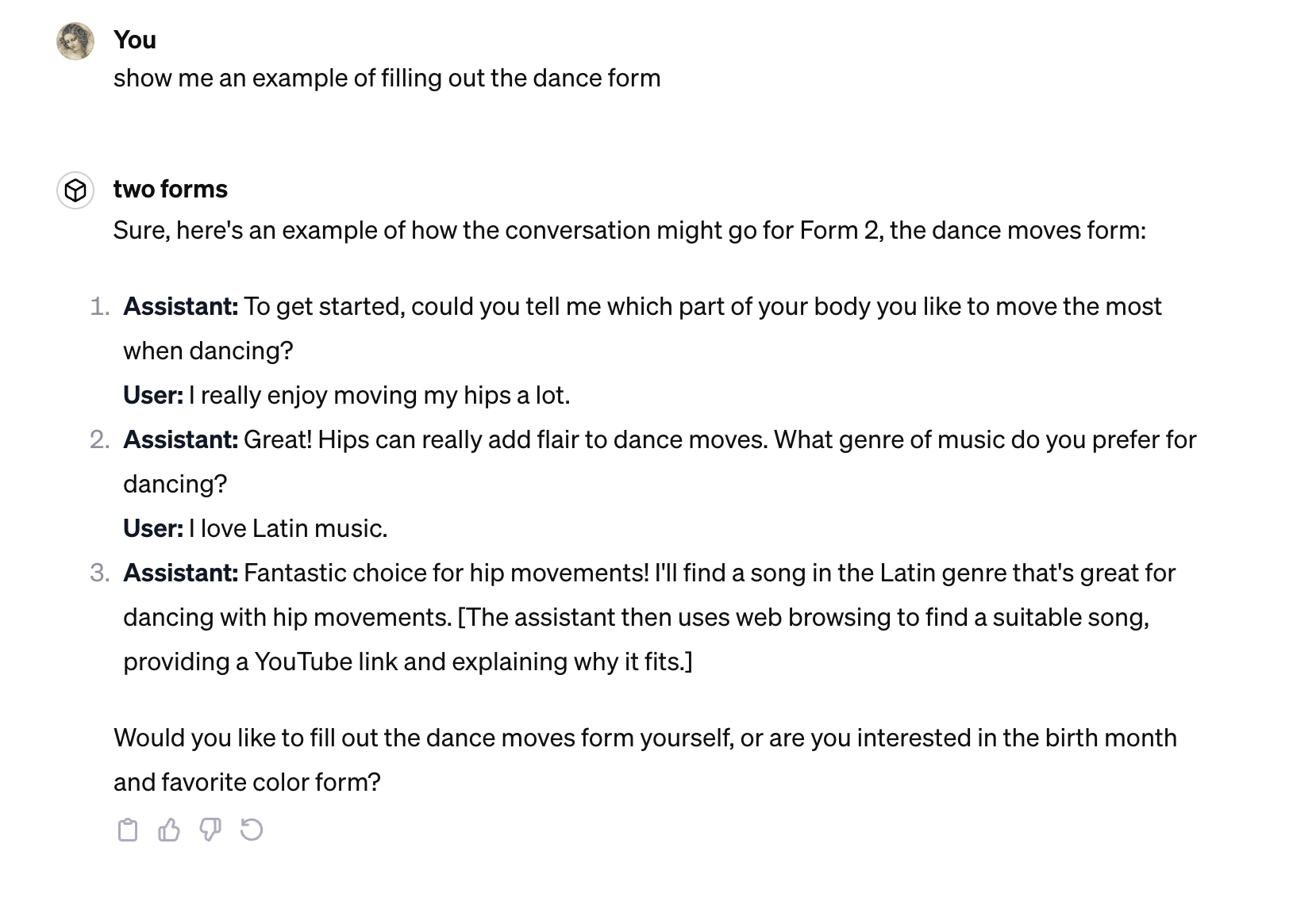 Form 1: Birth month and favorite color (roughly 3 messages to finish)