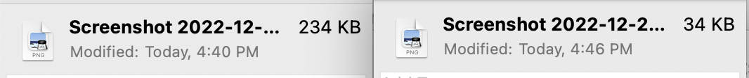 I followed this tutorial and set an Automator script to listen to new files being added to Private/Screenshots. Check out these savings! 86% savings! And it can run multiple files at once.[1]