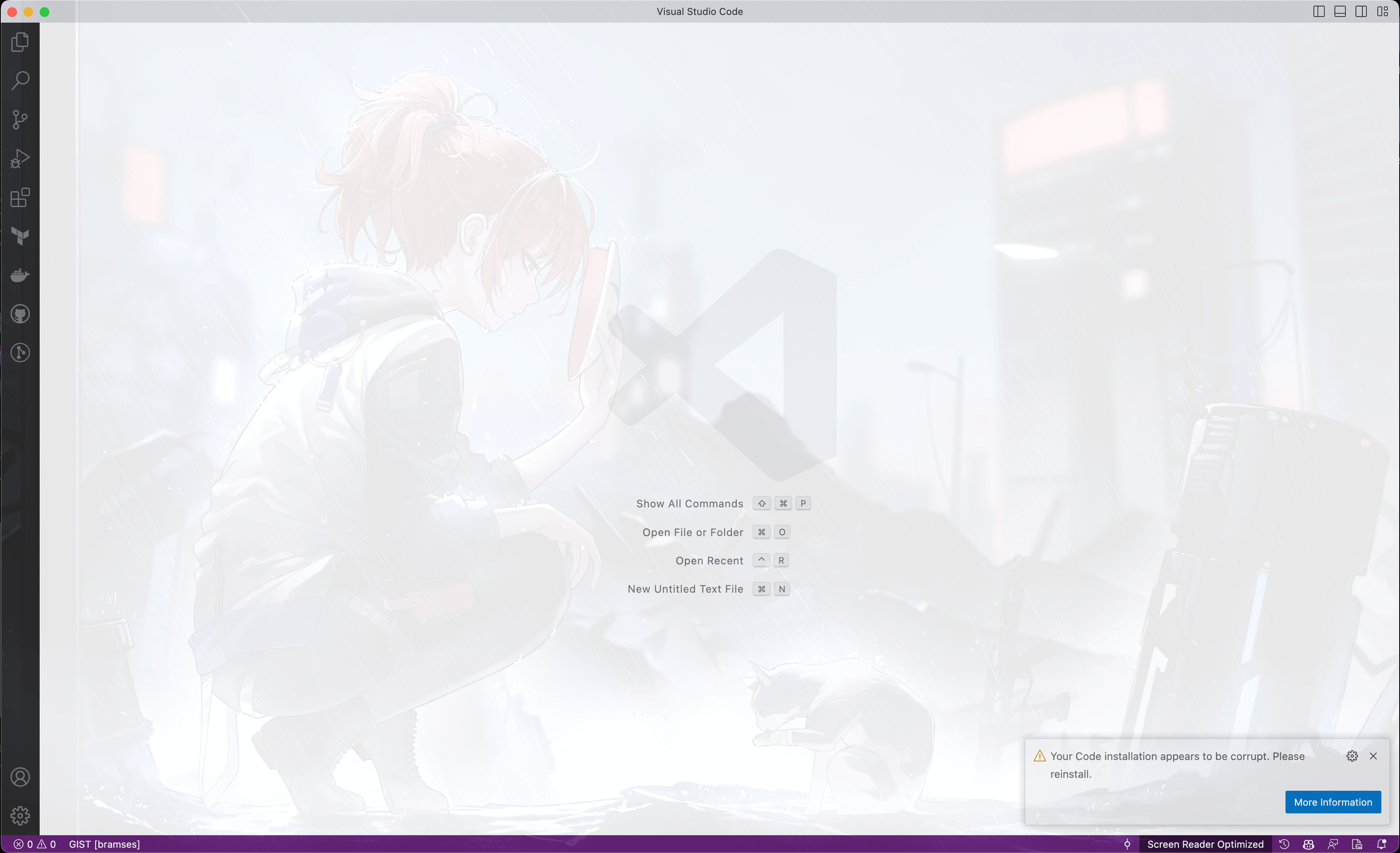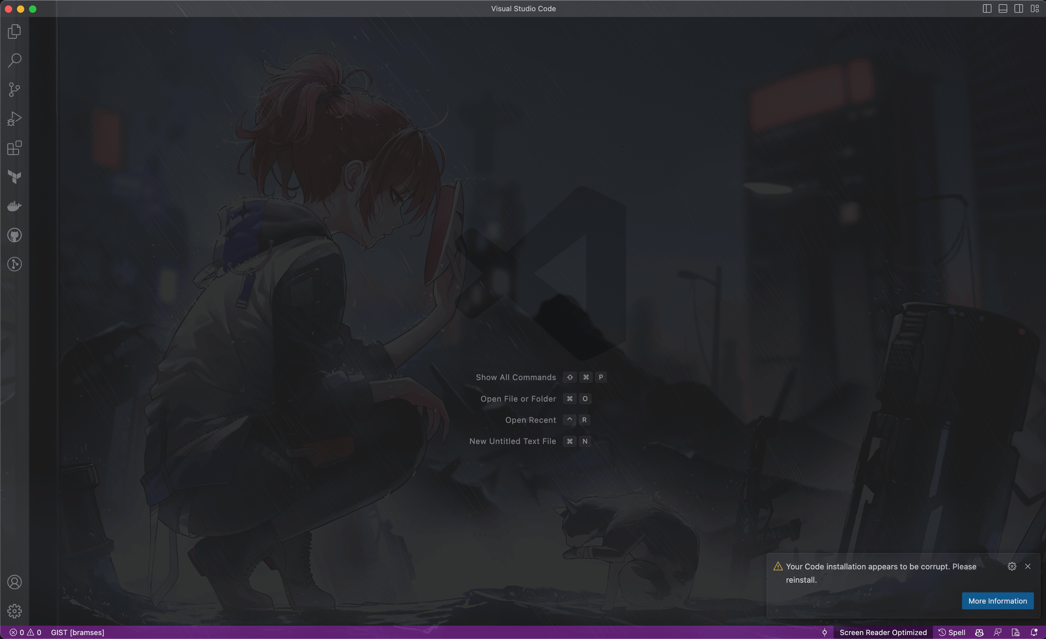 It's corrupted bc it edits the root styles.css of VSC, hope that doesn't bite me in the ass later lol. It looks fly as fuck, tho.