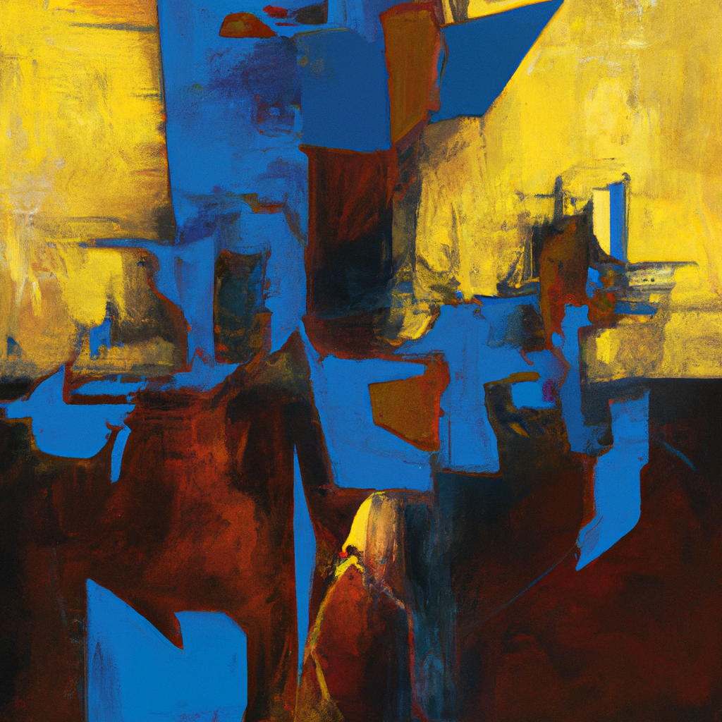 "Summarize the following into a theme and create an art prompt from the feel of the text aesthetically along the lines of: 'an abstract of [some unique lesser known art style from history] version of {x}' where x is the feel of the text aesthetically. Just return the art prompt, say nothing else." +
