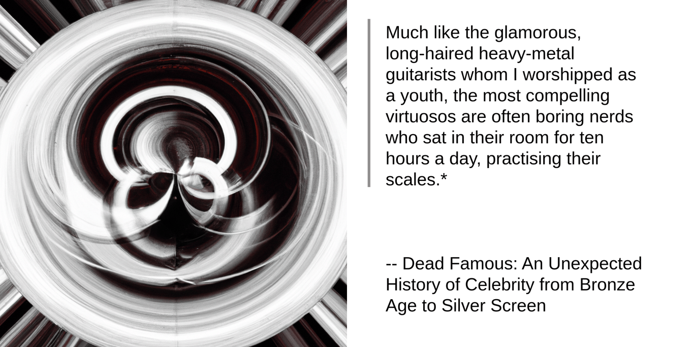 Much like the glamorous, long-haired heavy-metal guitarists whom I worshipped as a youth, the most compelling virtuosos are often boring nerds who sat in their room for ten hours a day, practising their scales.*