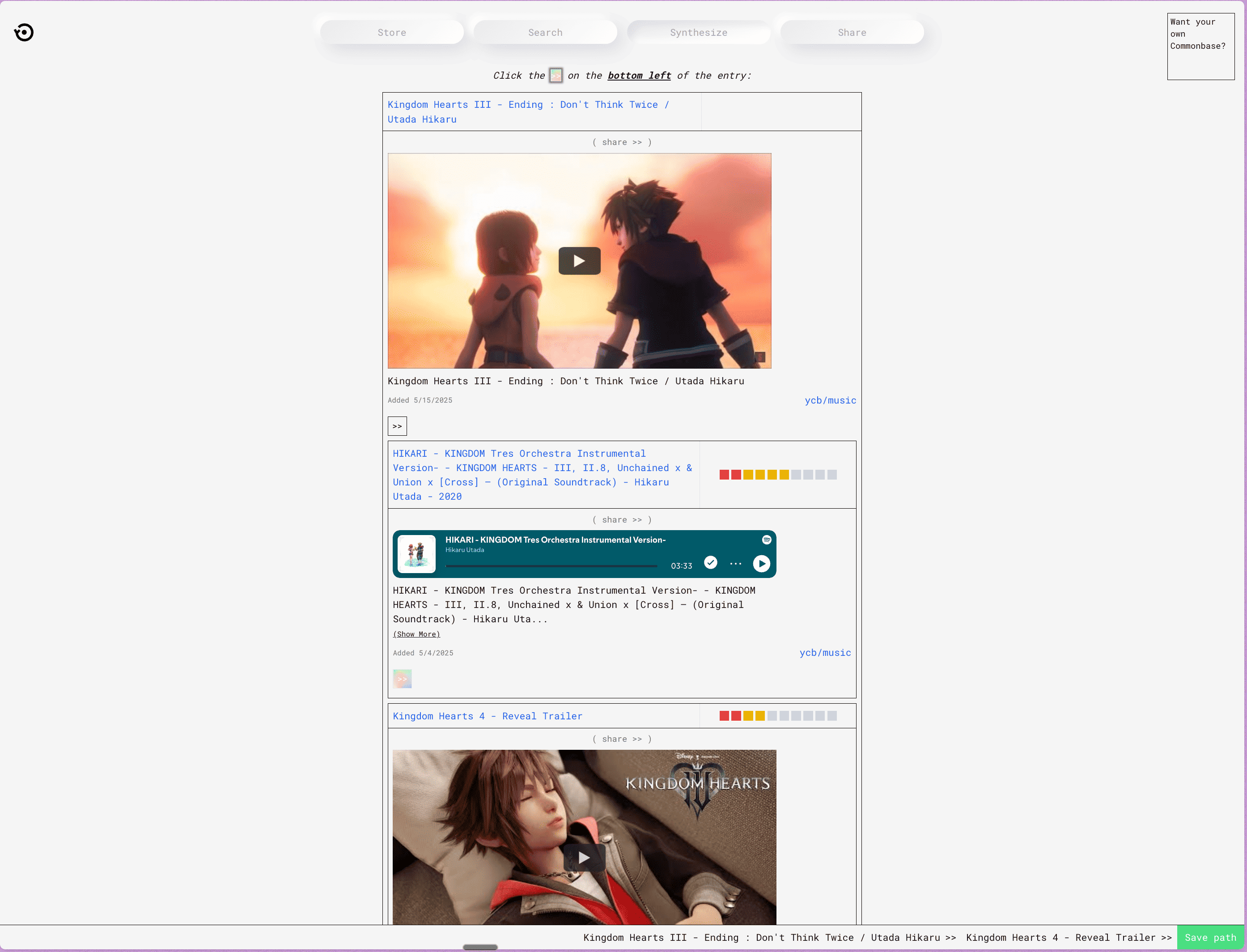 - store entries to Your Commonbase from Share Commonbase