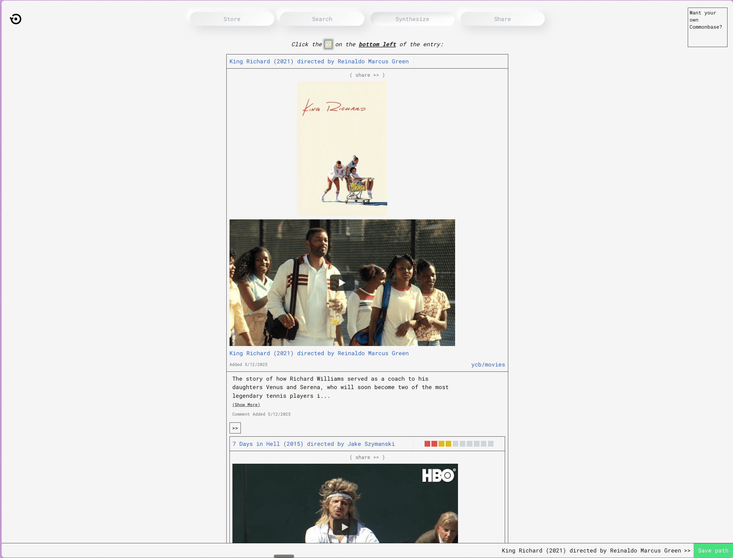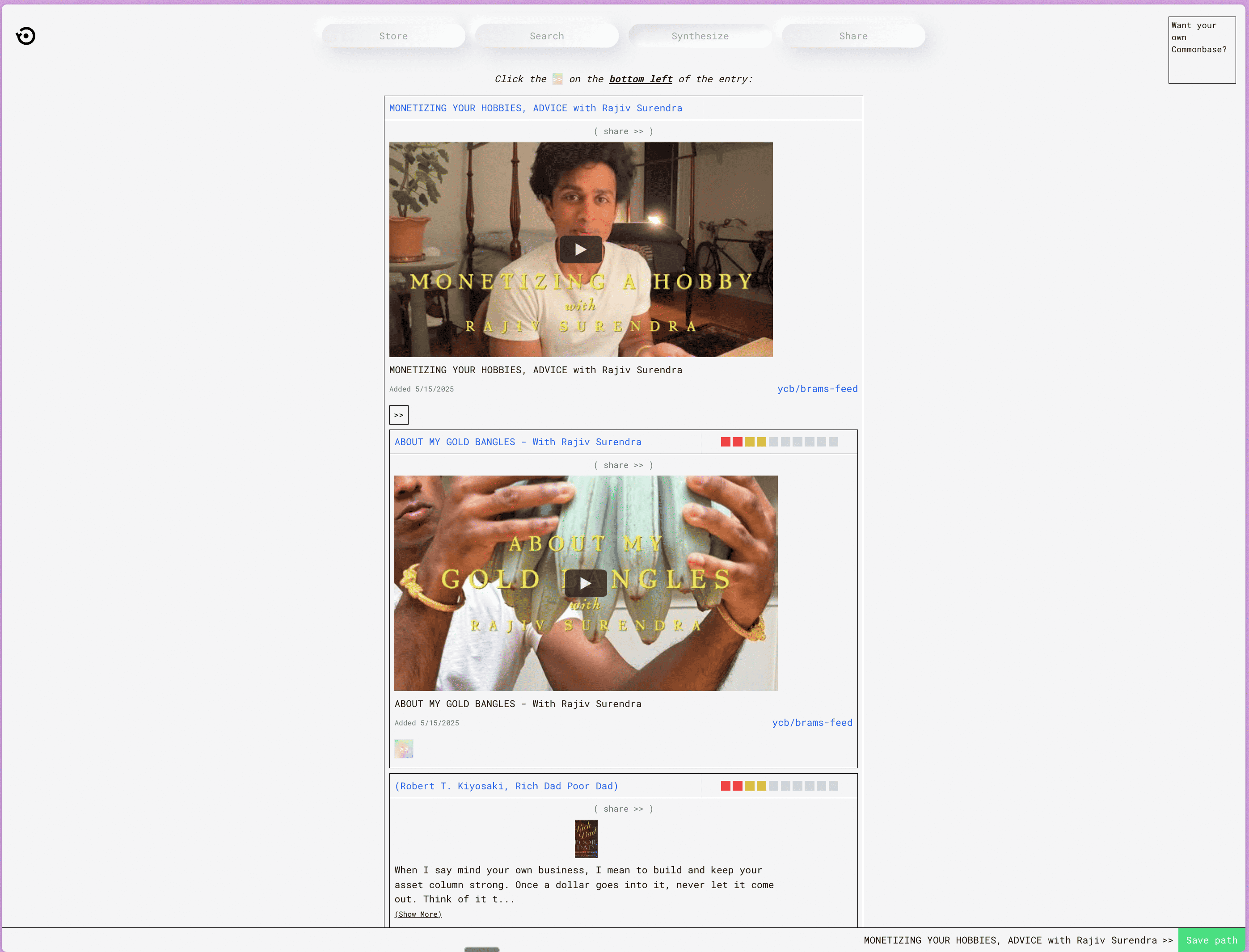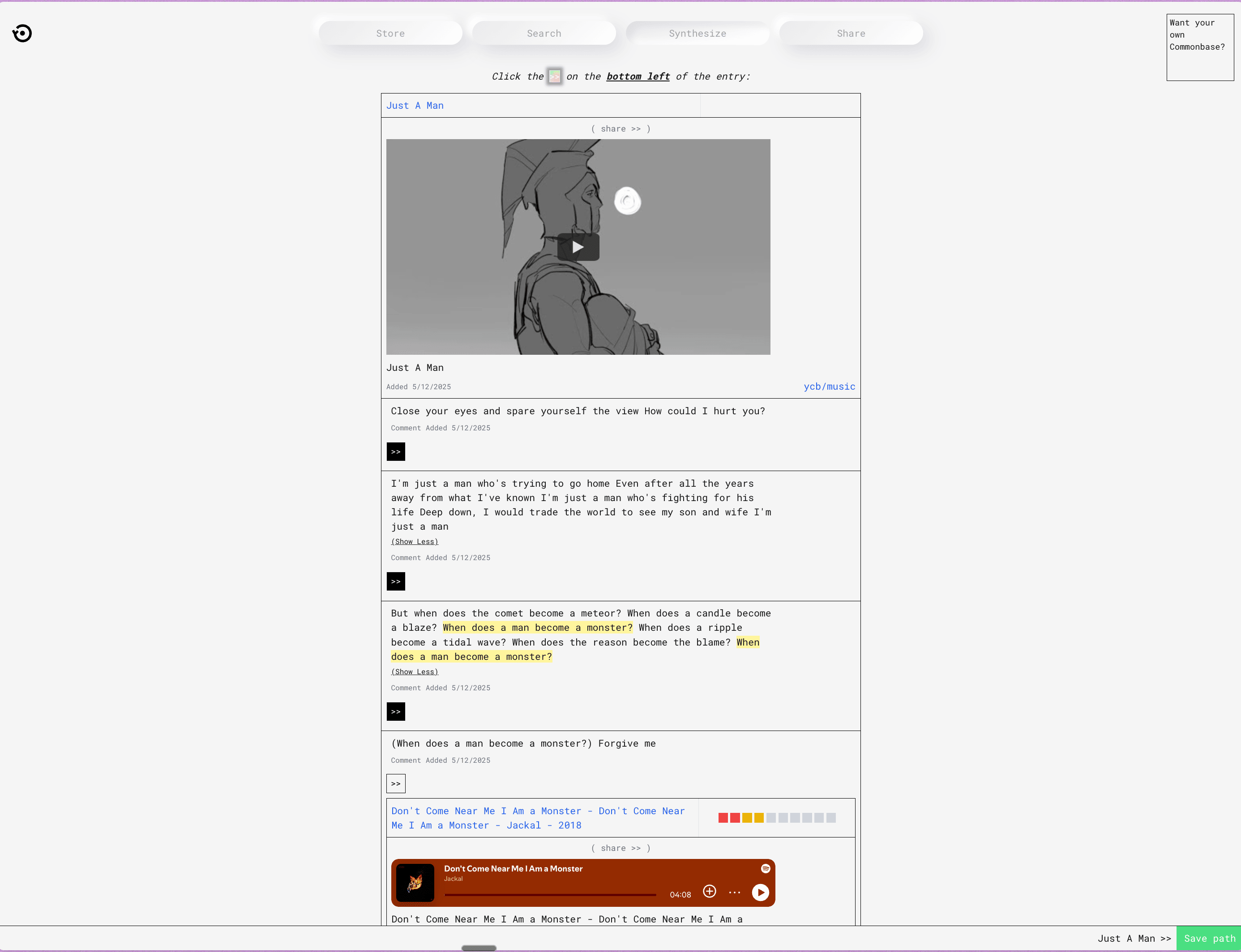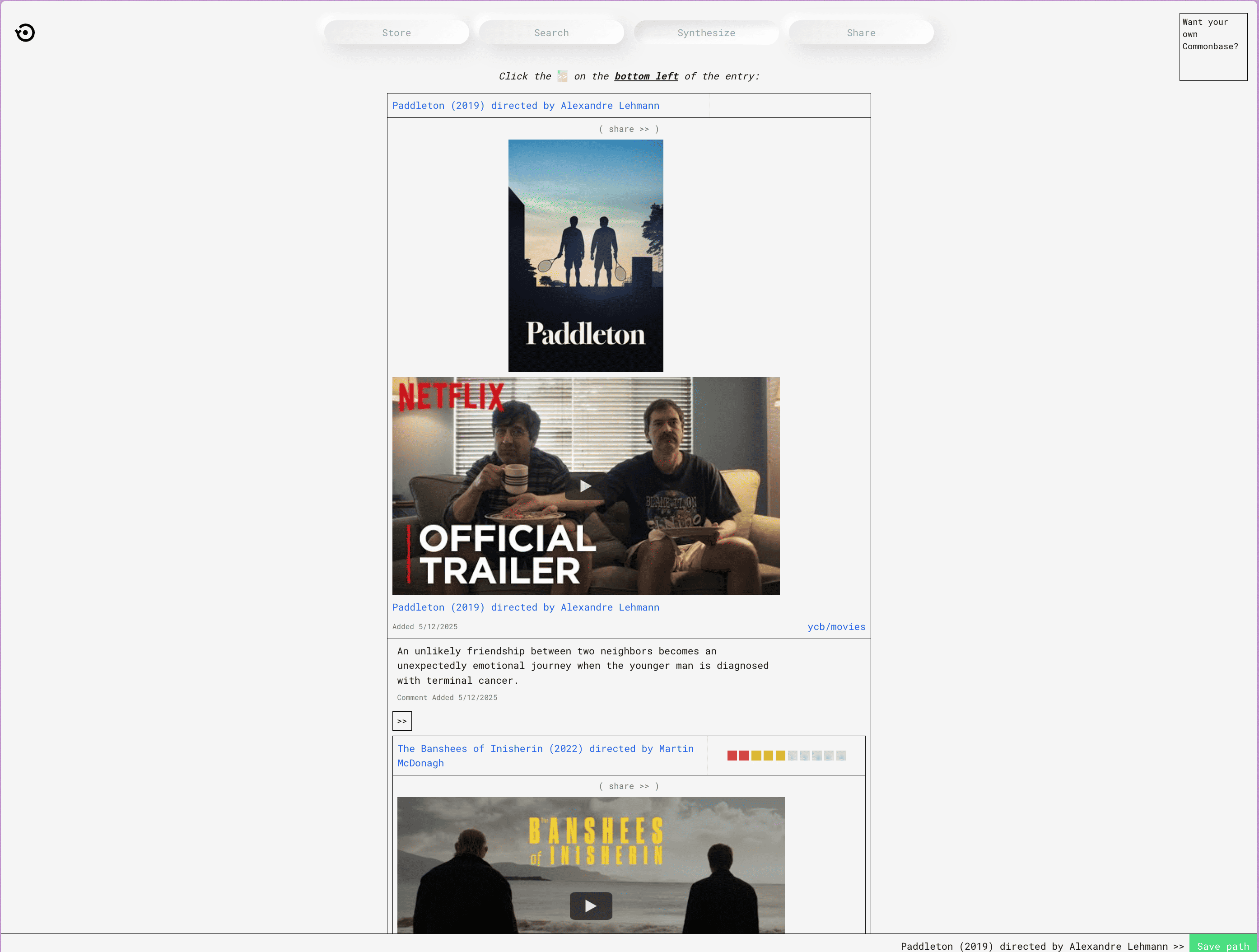 A variety of entries from Share Commonbase, paired with light commentary