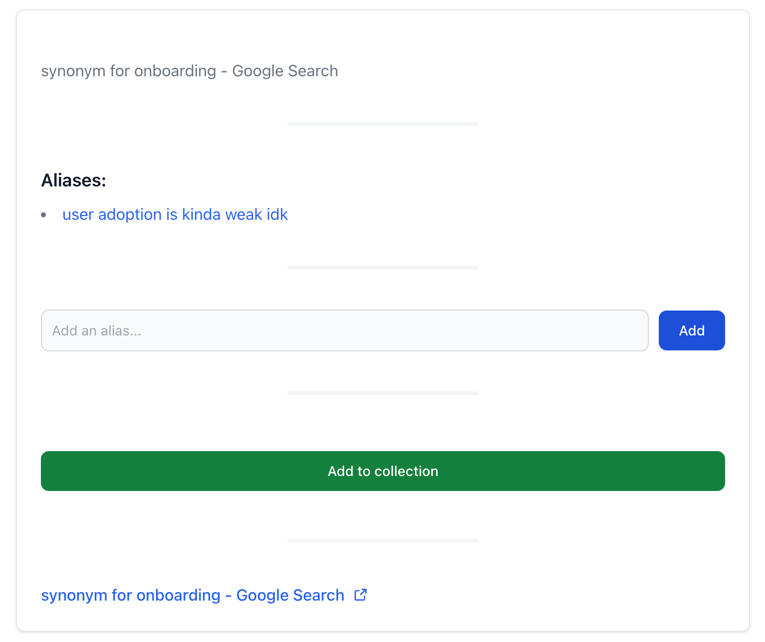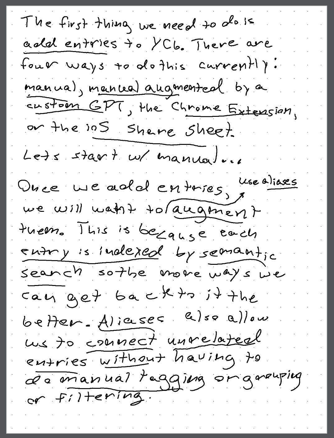 marketing lingo, setting up an alpha, streaming again poss, simple chrome ext, ios shortcut, keyword search too, collections