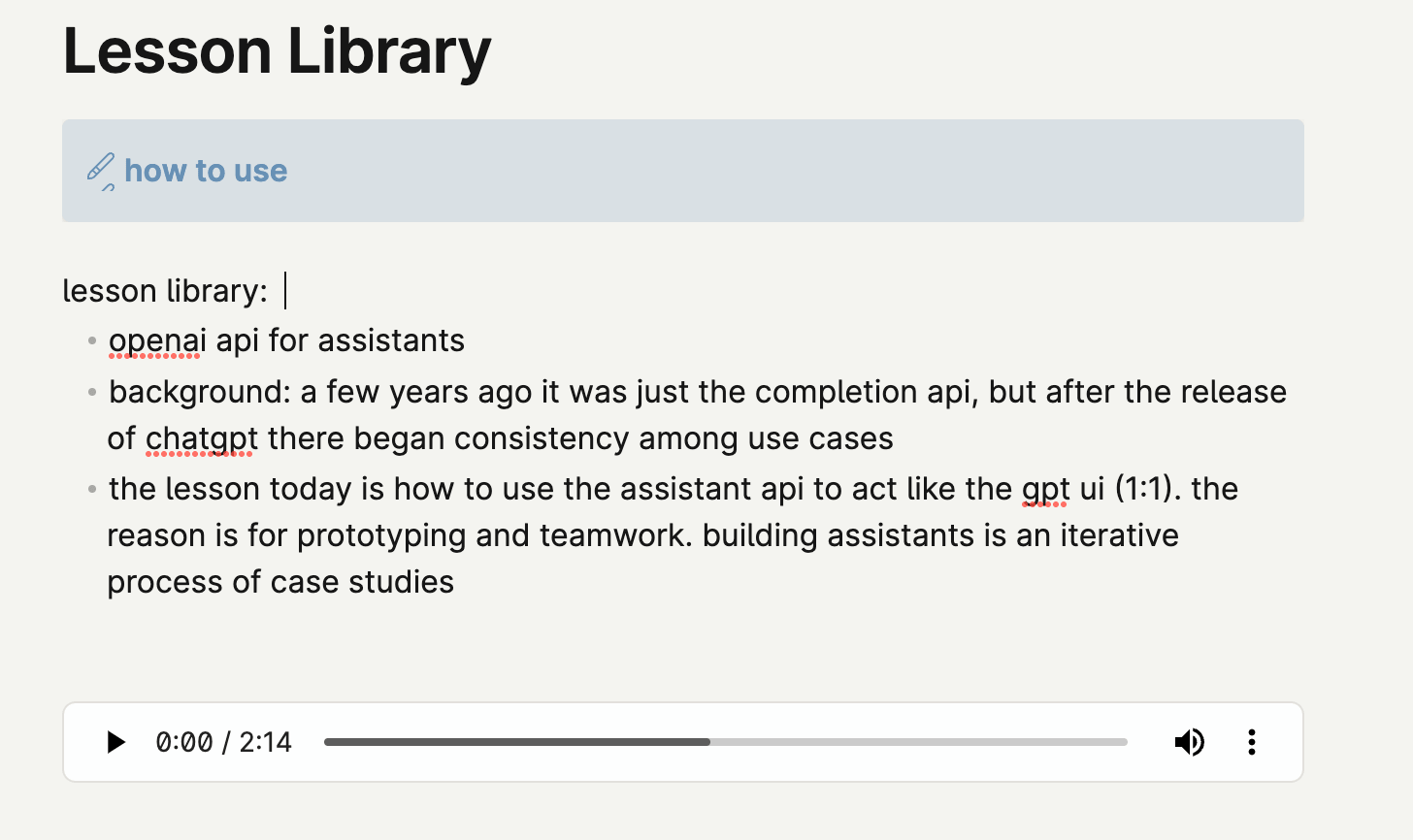 some meta work including setting up a template for each recorded section and insider baseball
