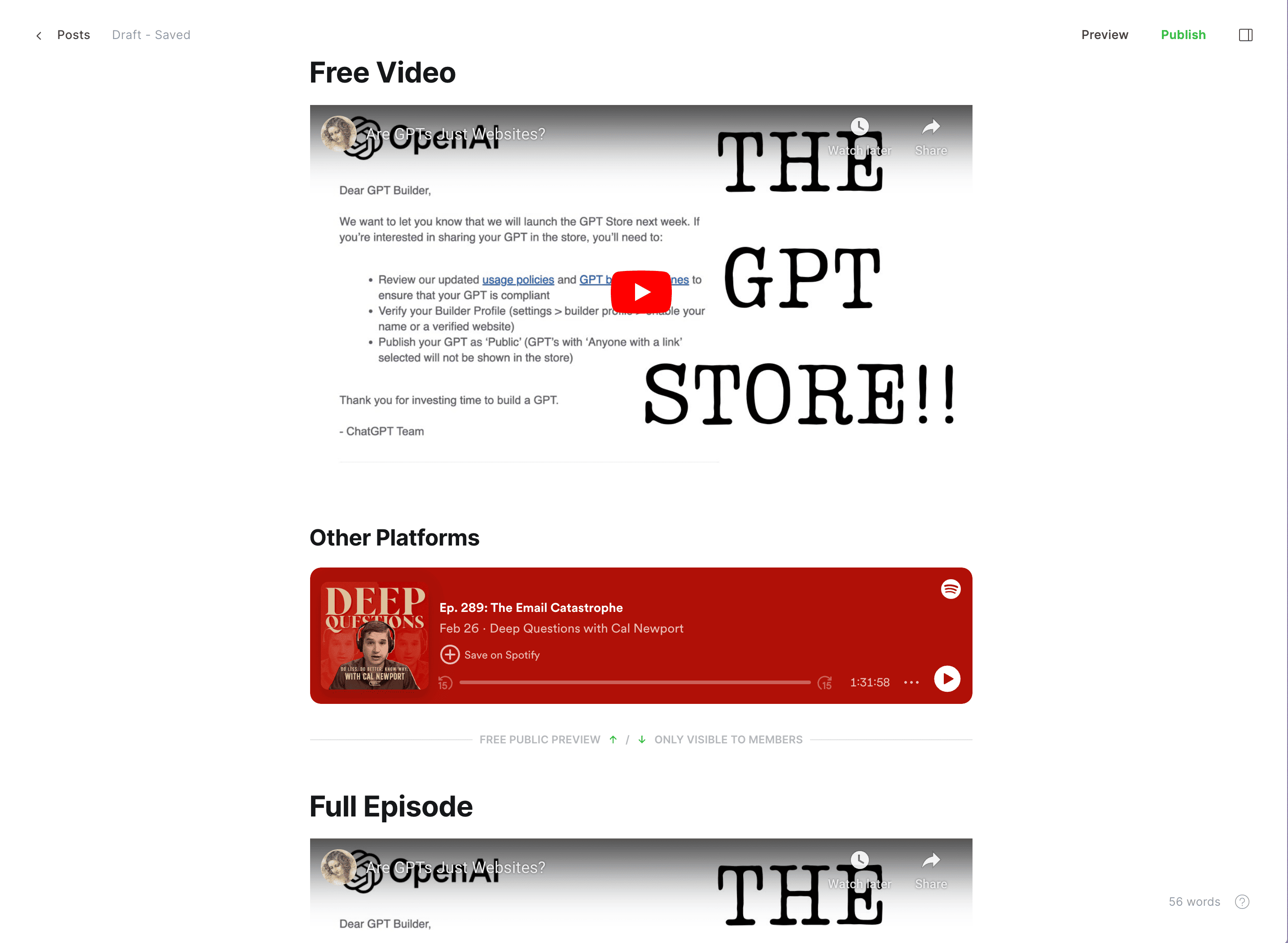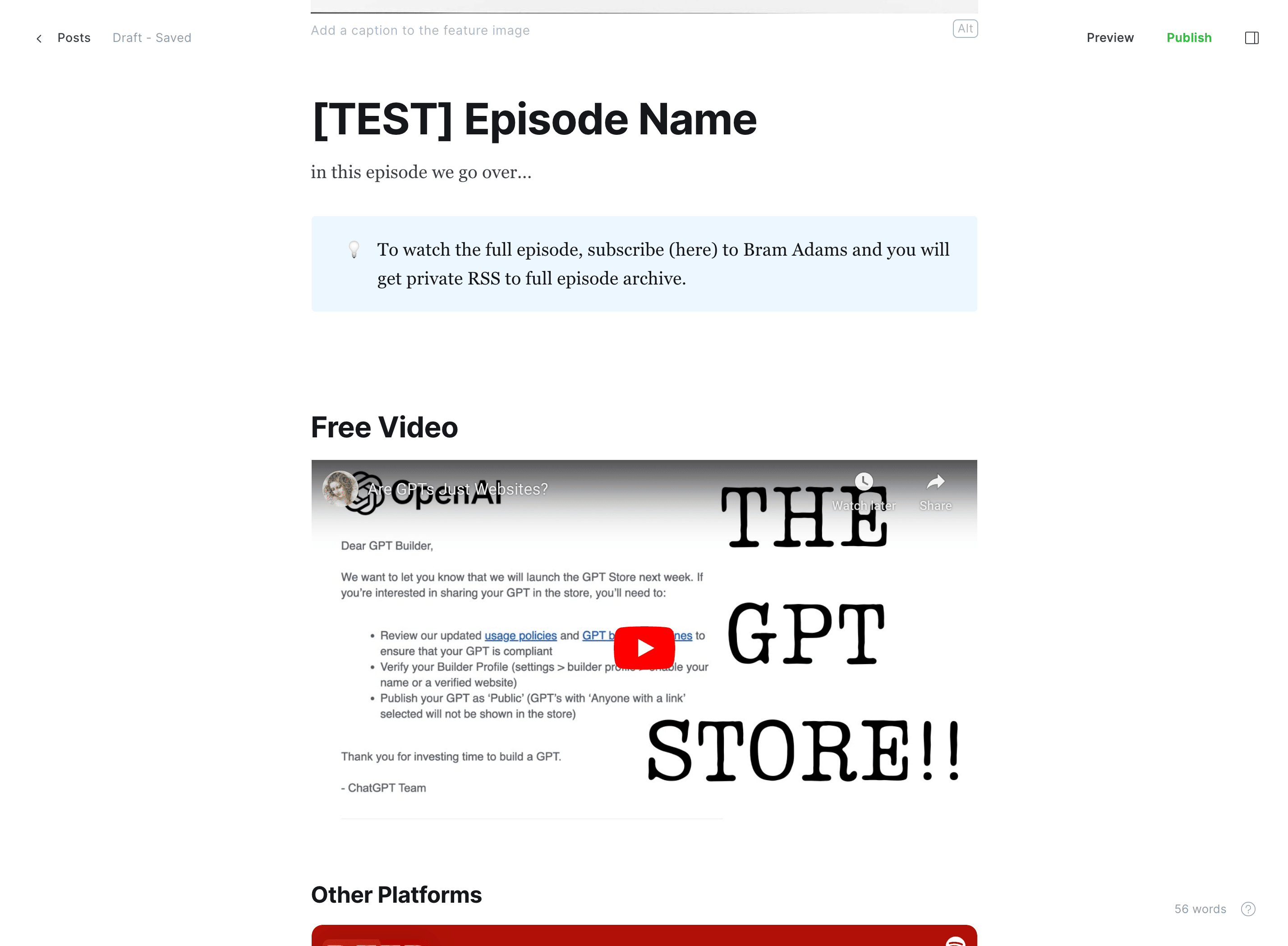 ghost rss private podcast is ideally the way i want to go. following a sam harris making sense model where first half of ep is free, and second half is for paid subs