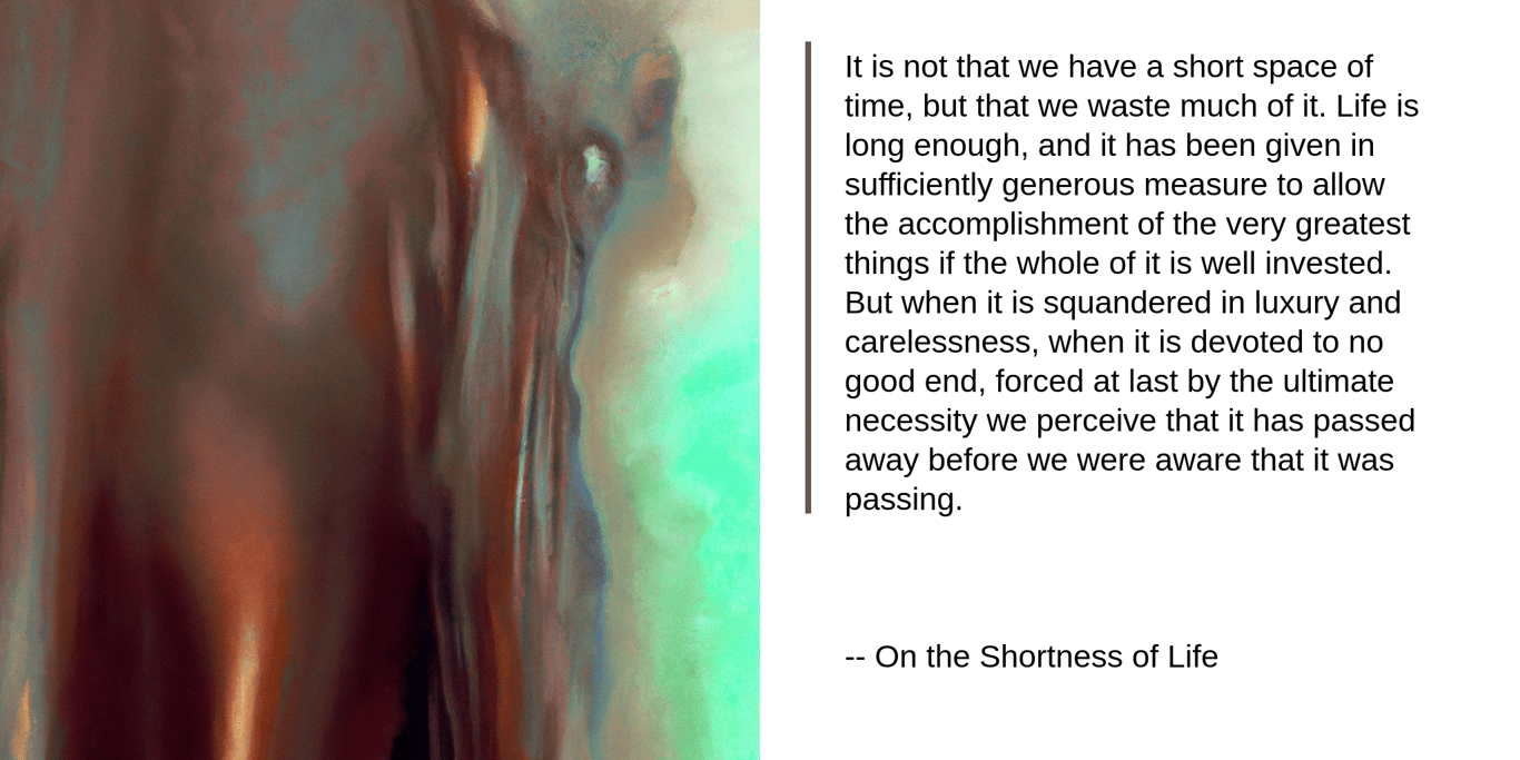 It is not that we have a short space of time, but that we waste much of it. Life is long enough, and it has been given in sufficiently generous measure to allow the accomplishment of the very greatest things if the whole of it is well invested. But when it is squandered in luxury and carelessness, when it is devoted to no good end, forced at last by the ultimate necessity we perceive that it has passed away before we were aware that it was passing.