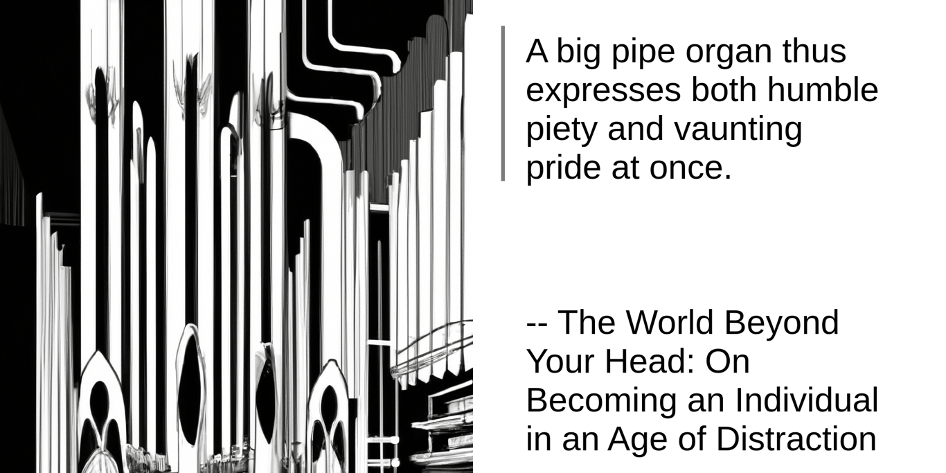 A big pipe organ thus expresses both humble piety and vaunting pride at once.