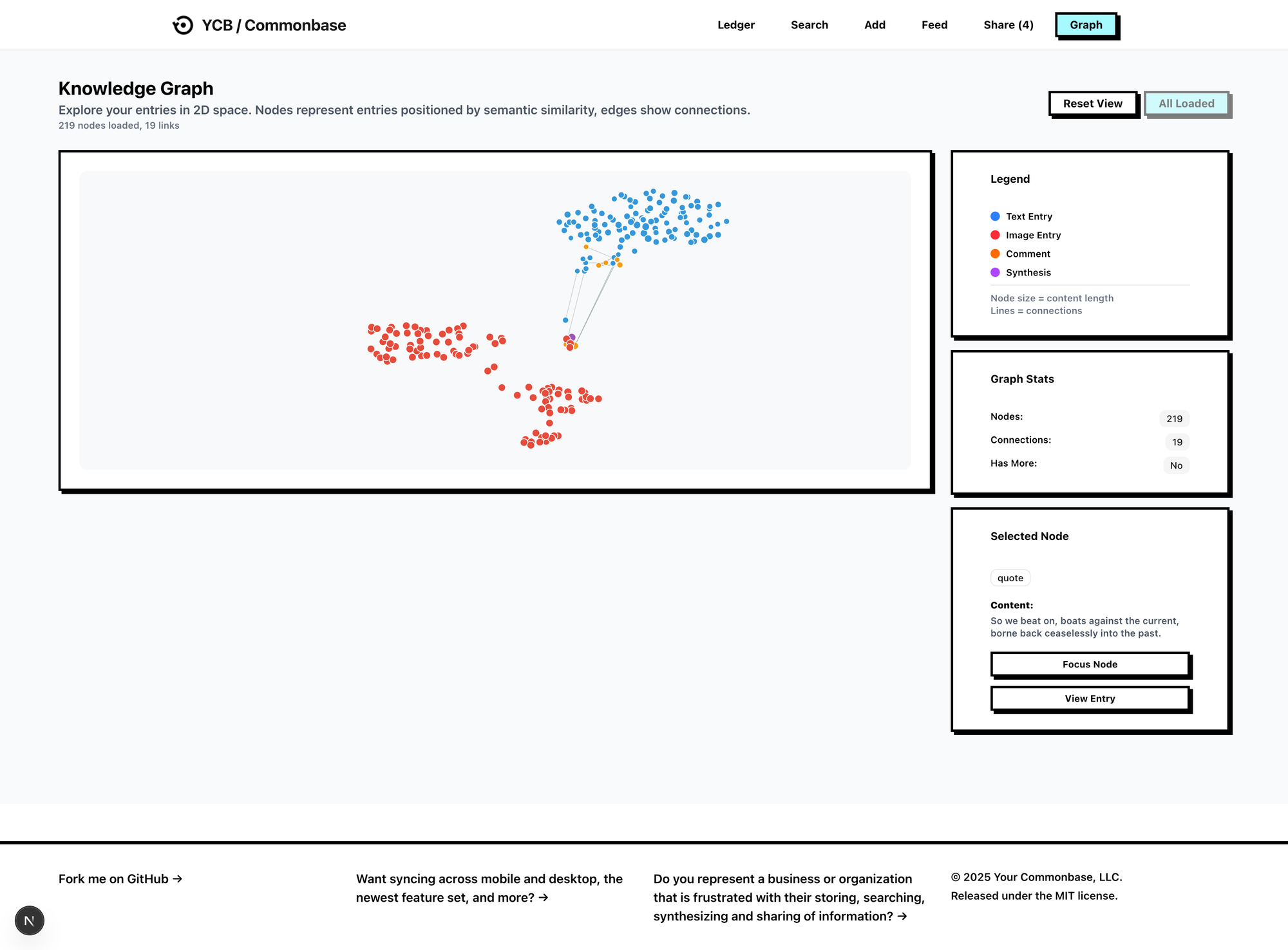 As highlights and annotations are added to our Commonbase, we can visualize the clusters of our work in real time.