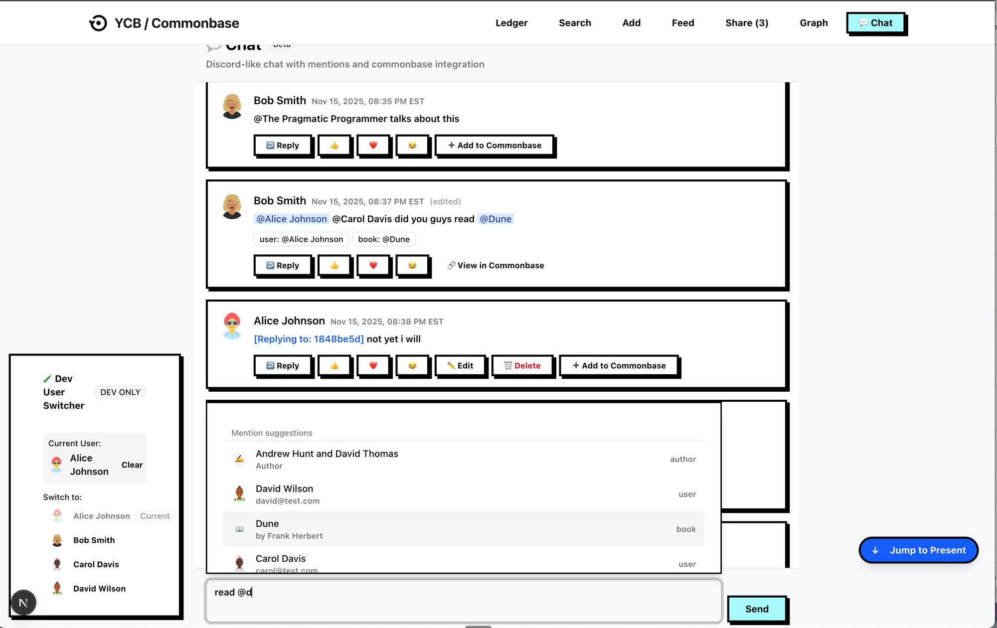 Discord Style Chat with @ for Books and Authors